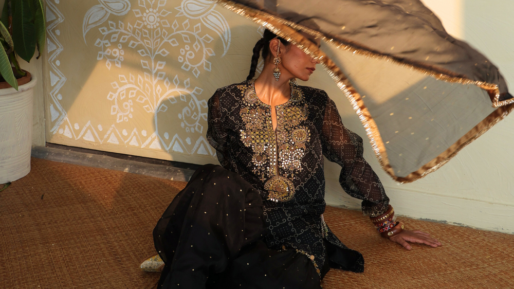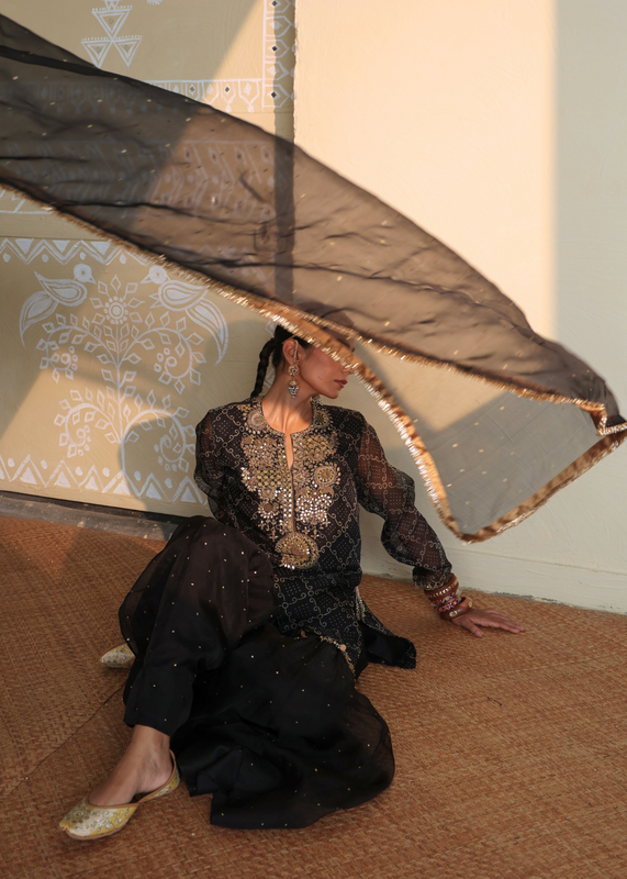 Introducing our new festive collection, “MAIWA.” This collection is inspired by intricate hand-painted and printed designs on luxurious organza fabrics. It features a harmonious blend of vegetable dyes, traditional bandhani, and shibori techniques. Each piece is handcrafted using organic textiles and adorned with exquisite hand embroidery. Celebrate the festive season with the timeless elegance of “MAIWA.”